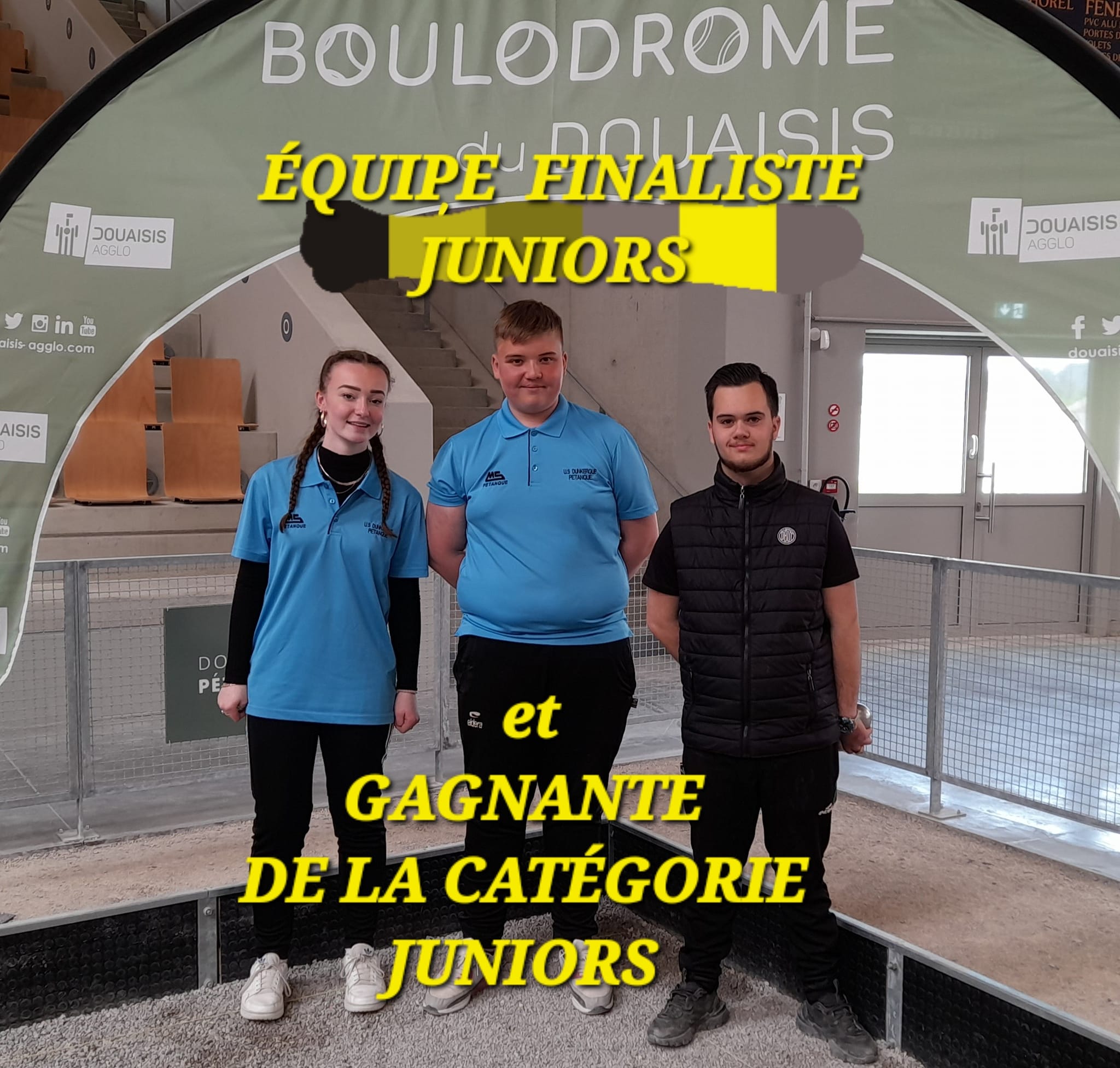 Ces Championnats Triplette Jeunes (Minimes/Benjamins - Cadets - Juniors) se sont déroulés au Boulodrome du Douaisis le samedi 13 mai :