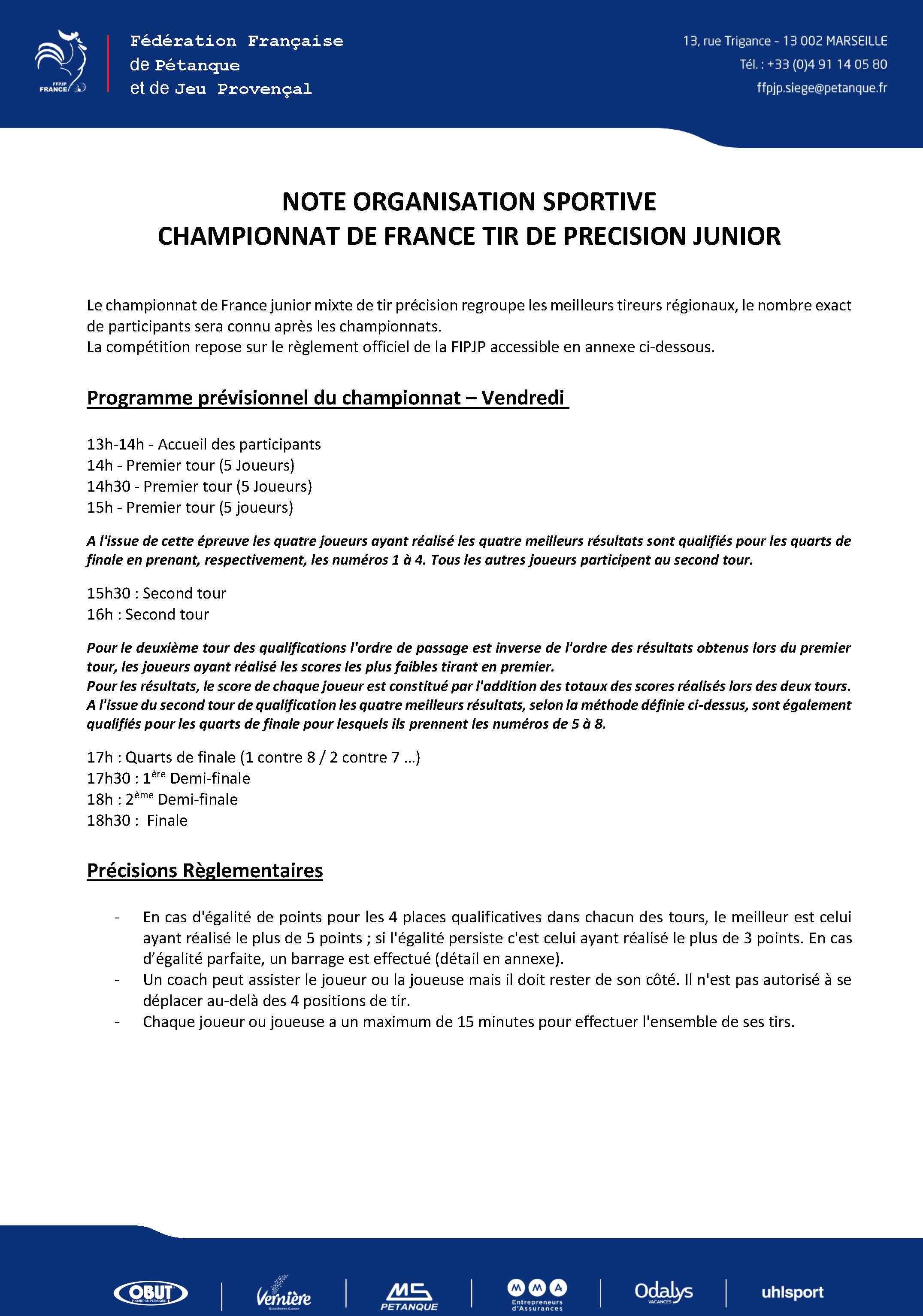 - Note Sportive sur l'organisation du Championnat de France de Tir De Précision Juniors (TDPJ) :