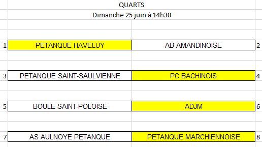 Résultats des Cadrages et 1/4 de Finales : qui se sont déroulés le dimanche 25 juin à 8h30.